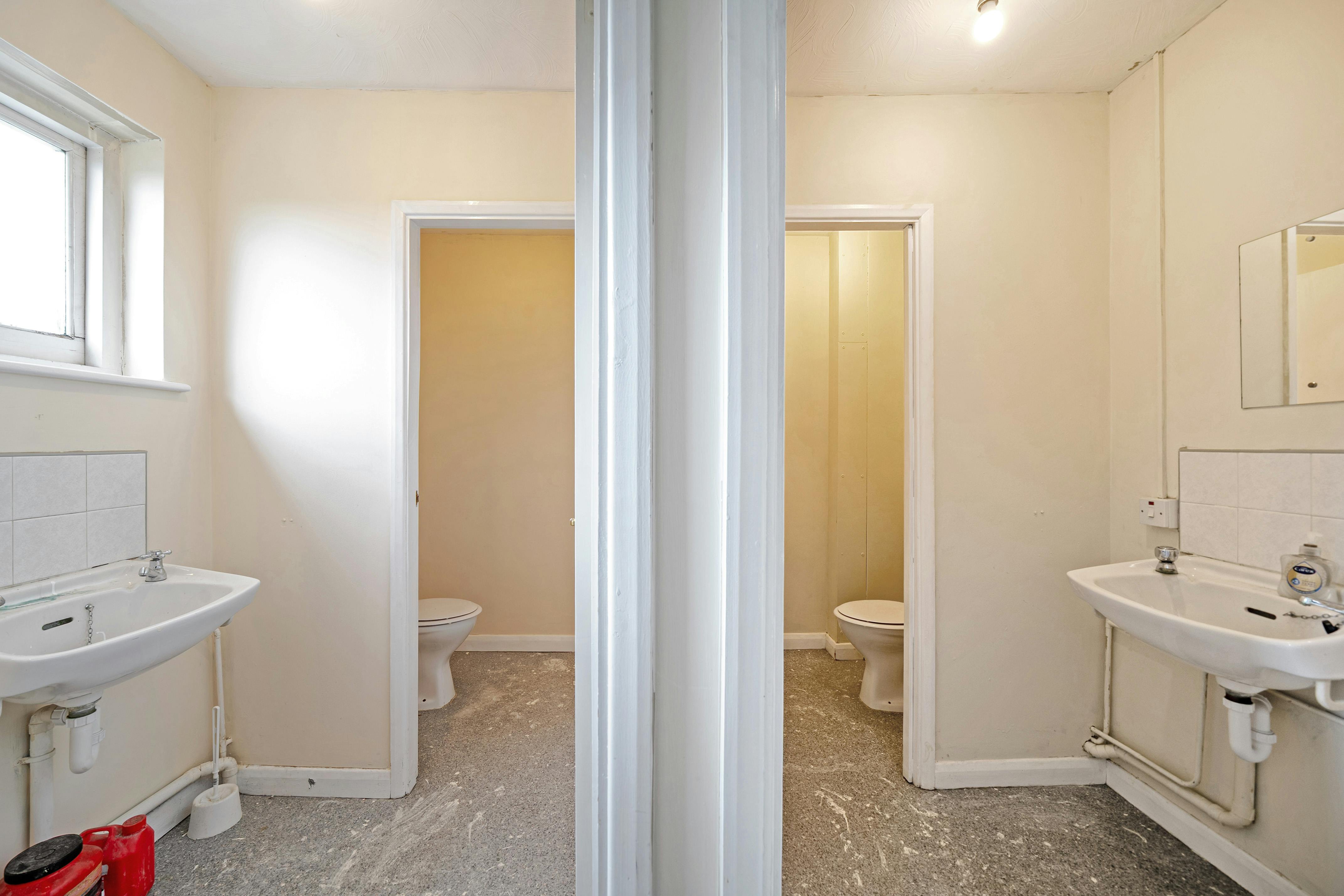 The property comprises an end of terrace light industrial unit constructed of steel portal frame with brick and block elevations to a pitched roof benefiting from a warehouse at ground floor and offices above. The warehouse has a full height loading door and allocated parking. The eaves height of the warehouse is approx. 15ft and the width of the loading shutters approx. 12ft. The ground floor totals 1,145 ft² whilst the first floor offices total a further 700 ft².
