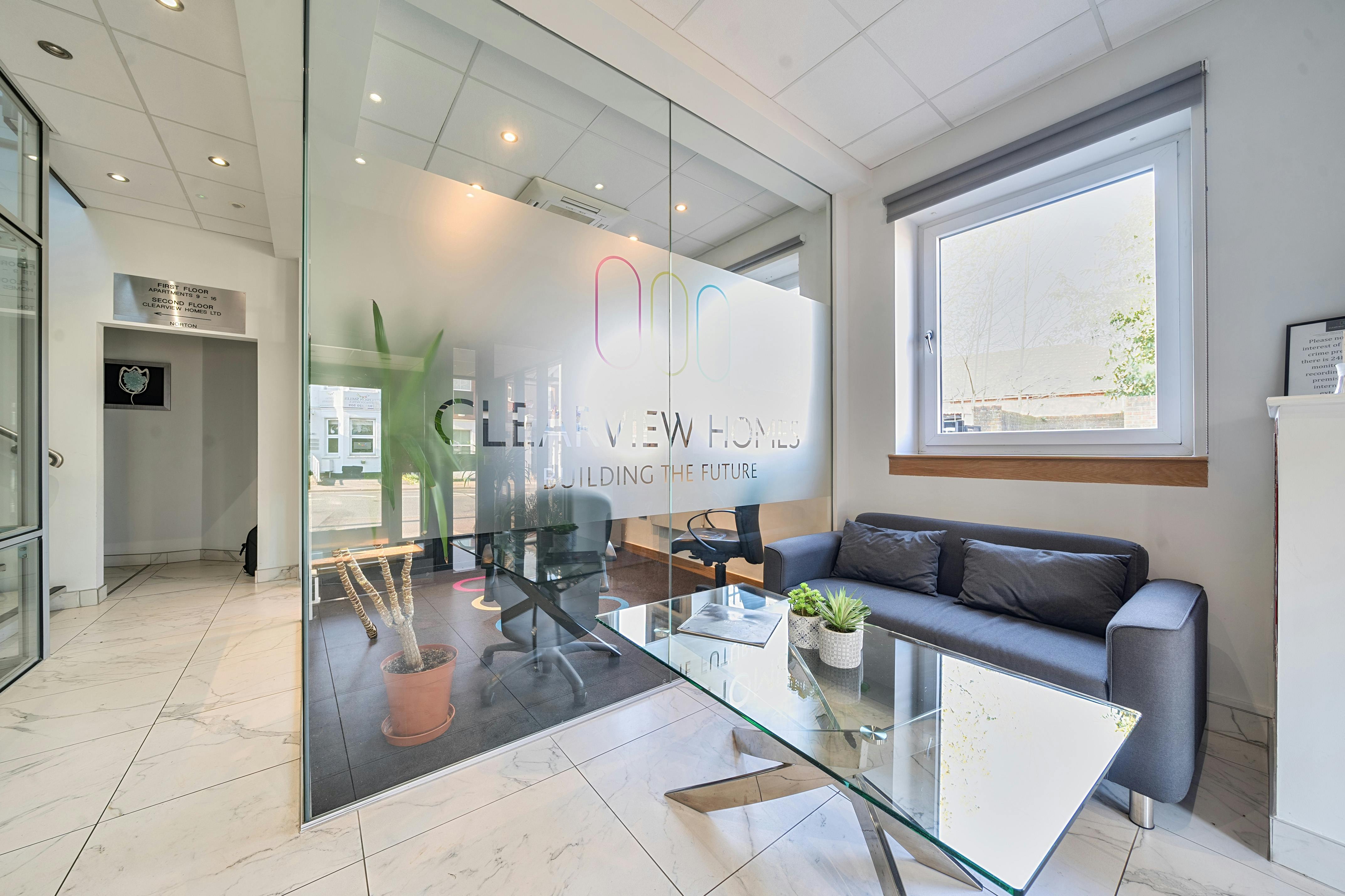 The office is situated on the ground floor of Clearview House, Northwood. The office benefits from glass partitioning, a suspended ceiling, air conditioning, an electric heater, and shared toilet facilities on the ground floor. Parking is available to the rear of the building at an additional cost of £50.00 per calendar month.