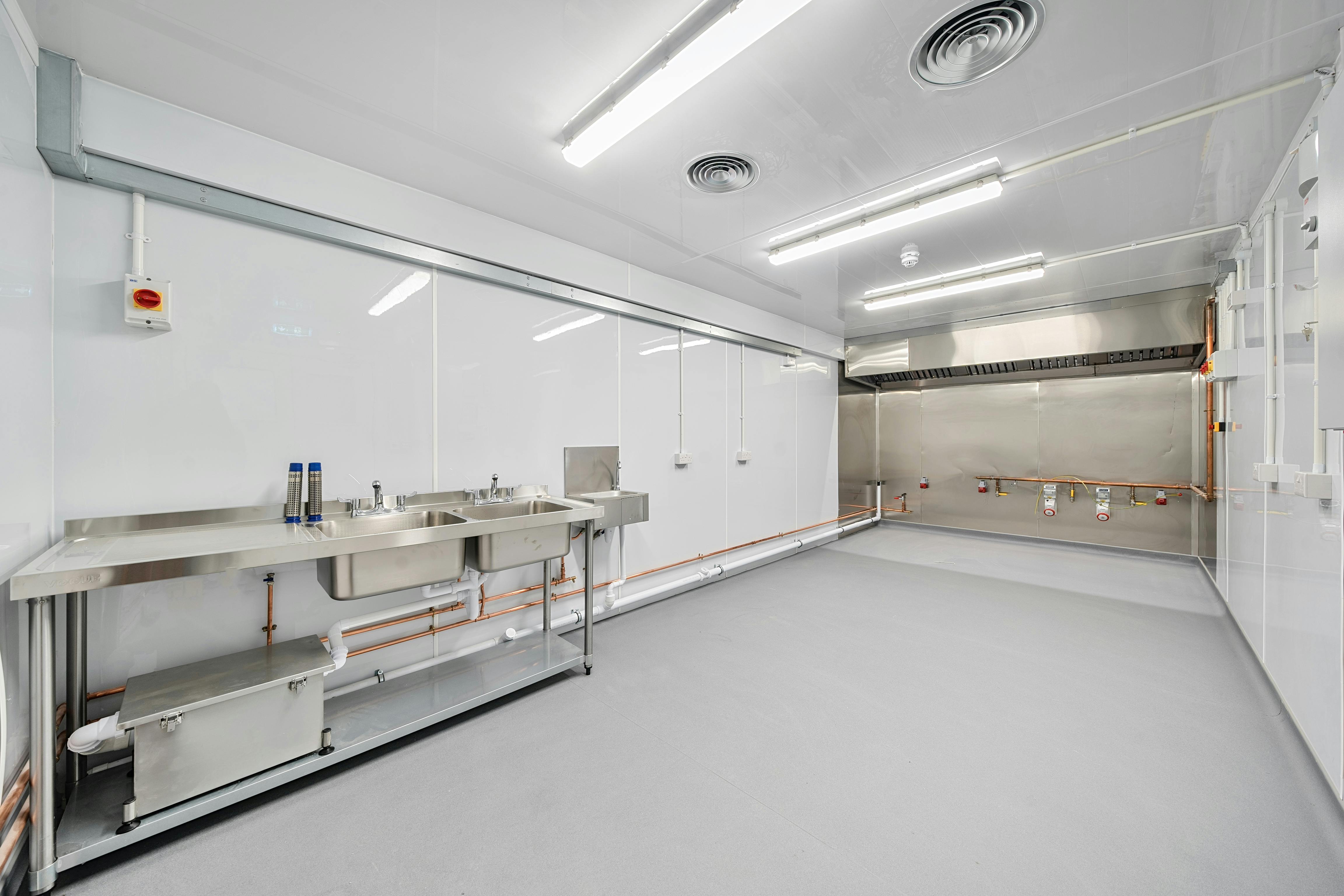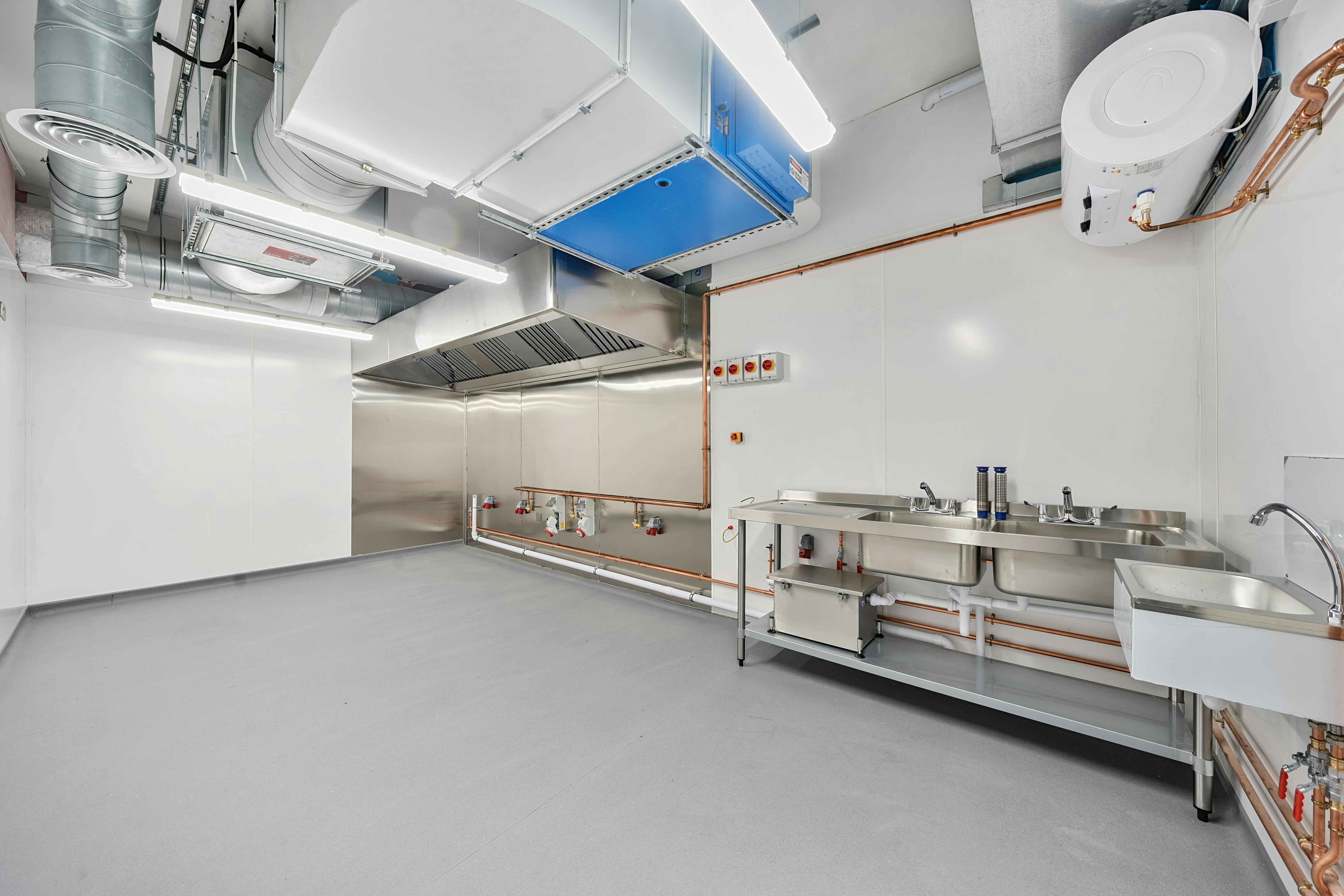 These purpose-built spaces are ideal for catering operators, delivery-focused food businesses, and dark kitchen operators. Each unit is designed to a high specification, offering modern fittings such as efficient ventilation systems, industrial-grade fridges and freezers, W/Cs and ample workspace to support high-volume food production. The premise benefits from 24-hour security, convenient access for deliveries, and excellent transport links, making it a strategic location for businesses seeking operational efficiency and scalability.