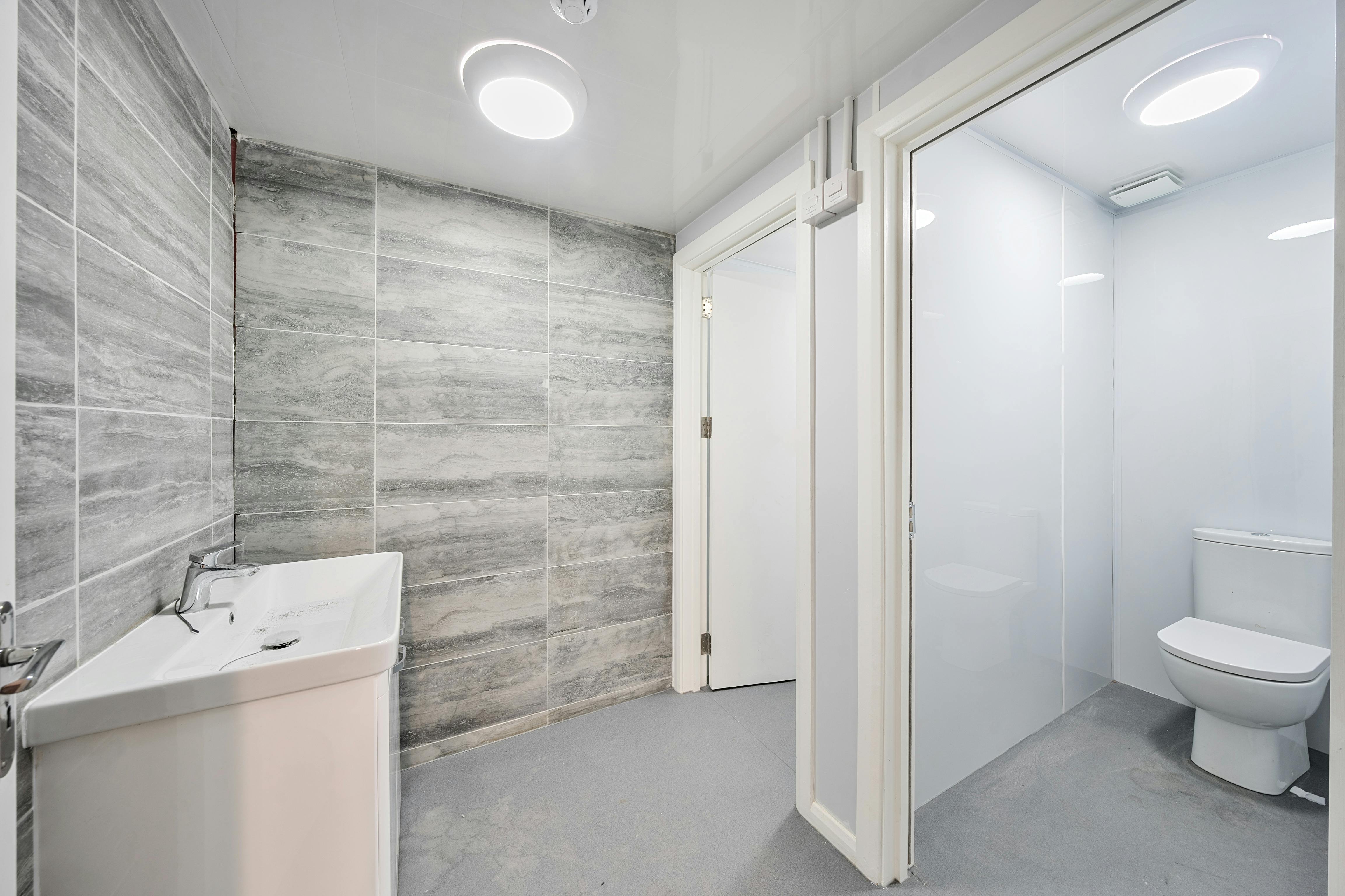 The building comprises nine newly fitted commercial kitchens, totalling approximately 4,790 sq ft. Of this, around 2,400 sq ft is dedicated kitchen space spread across both floors. The property is situated within a mid-terrace light industrial unit on a secure estate in Wembley.