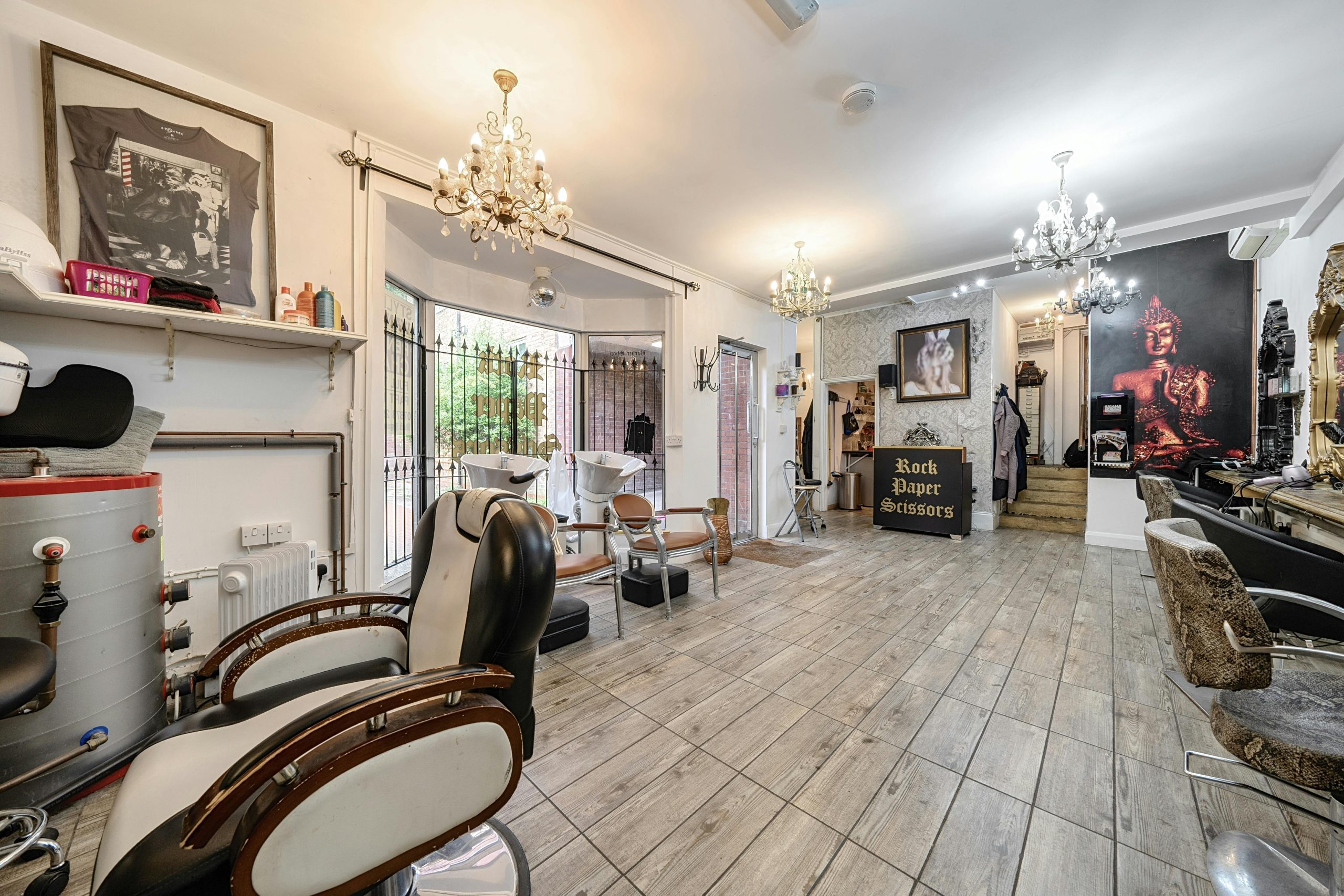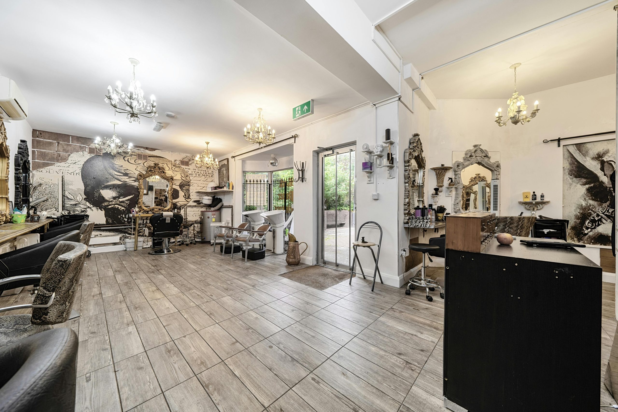 The property comprises an A1 shop and a kitchenette on the ground floor totaling 519 sq. ft. The shop has an open floor plan with wood flooring and WC facilities.
