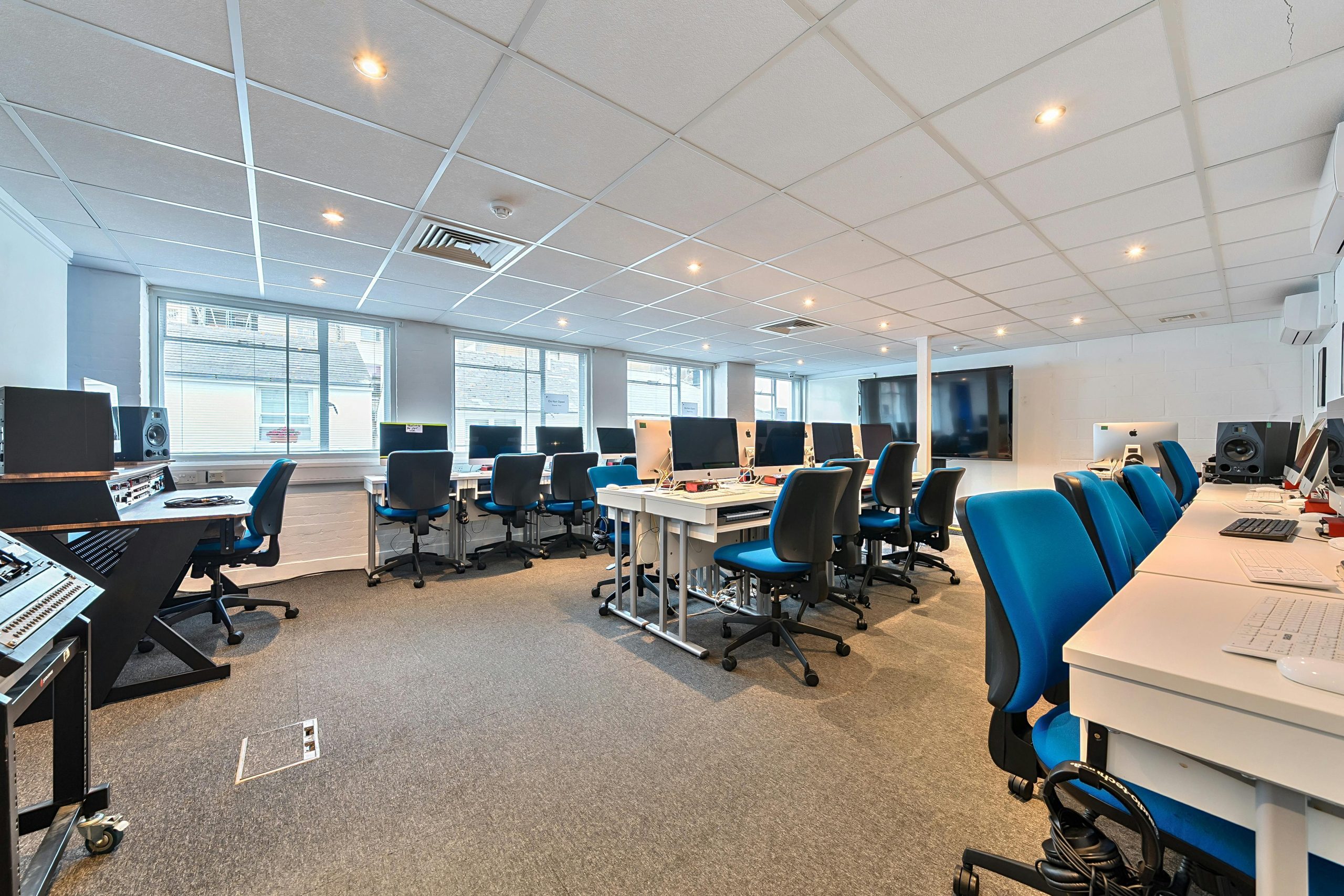 The building comprises a semi-detached brick-built property made up of 3 interconnecting units with triple pitched corrugated insulated roofs. It has part double glazing and secondary glazing, heating/cooling and an accessible lift. It is fitted by the current occupiers for its purpose as an educational facility for the teaching of music. It is several study areas with additional specialist teaching rooms. Externally there is an area of parking/hardstanding.