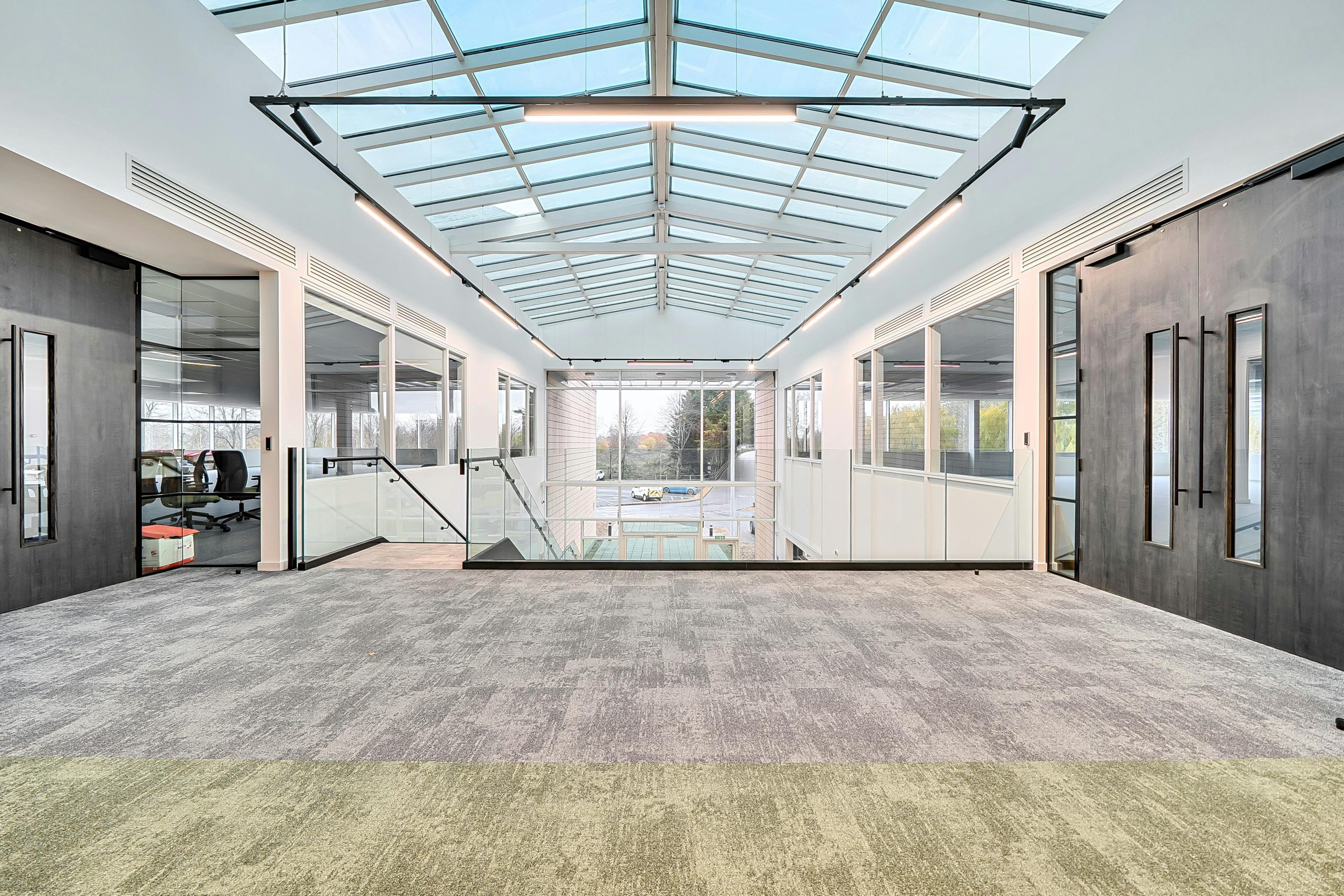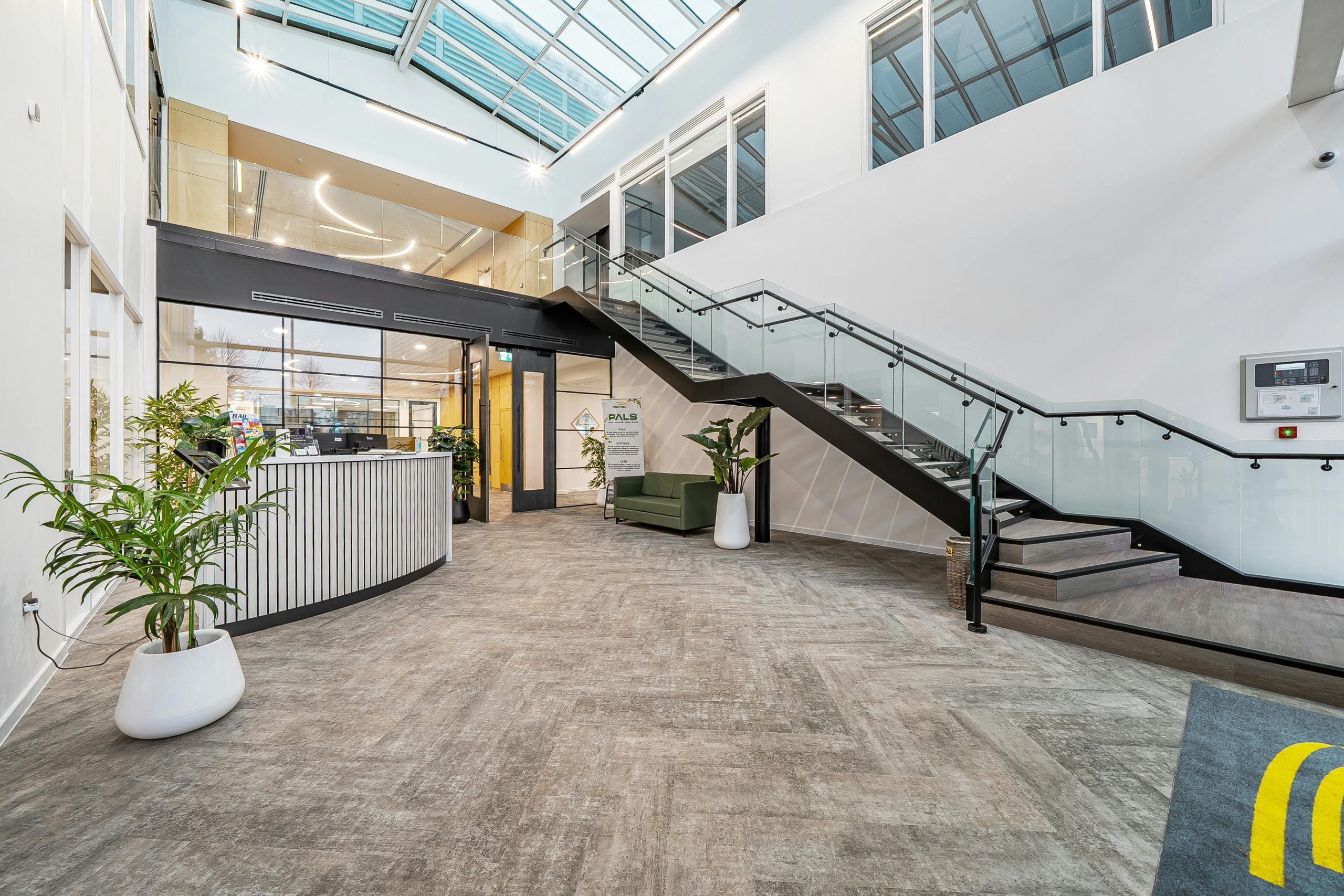 The accommodation comprises of an open plan office of up to 12,000 ft² available in part or in its entirety. The building has recently undergone extensive refurbishment and thus presents an excellent opportunity for a business to take part or the entire floor in what will be a thriving office environment. The first floor is accessed via a welcoming central atrium space which leads into a communal area with showers and toilets. The first floor is split into two wings either side of the main central atrium offering light filled space throughout.